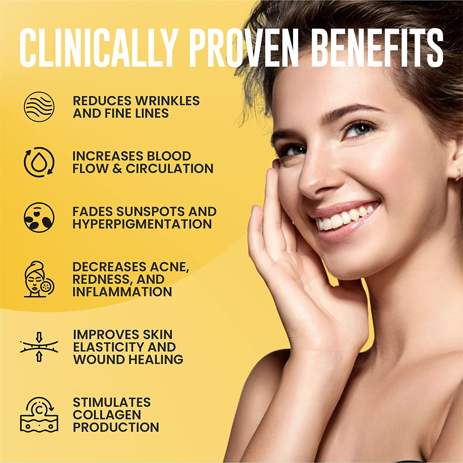 • ?? SCIENCE: Dermabeam works by energizing the skin cells to heal and perform optimally. The benefits include reduced blemishes, redness, wrinkles, dark spots, hyperpigmentation, and big pores while increasing collagen production and improving texture and complexion.