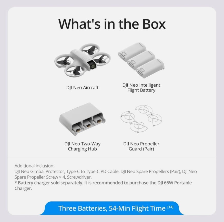 Up to 18 min flight time per battery; combo includes extra batteries, charging hub, prop guards