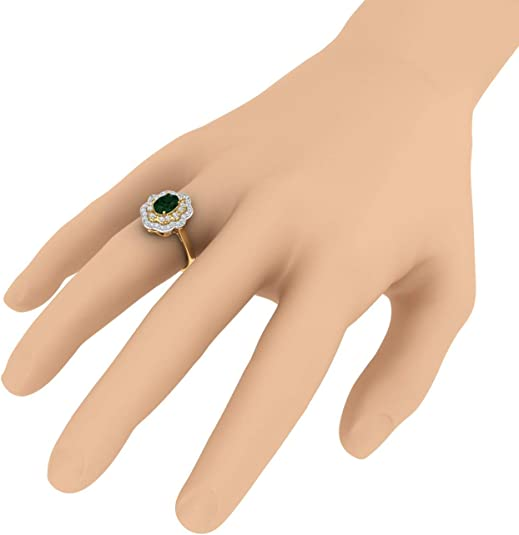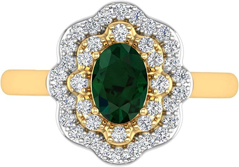 1.05 Carat Oval Shape Emerald and Round Diamond Engagement Ring in 10K Gold